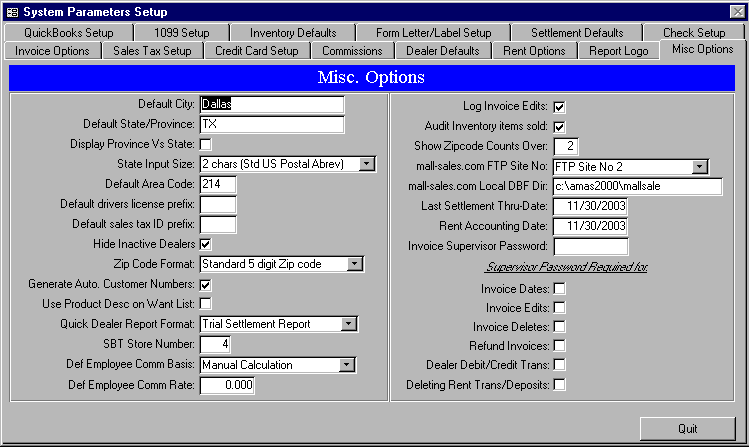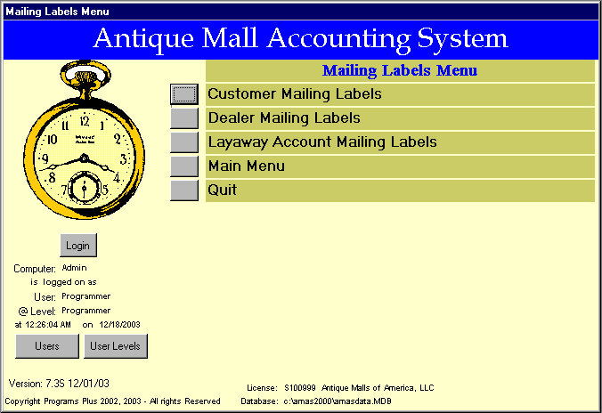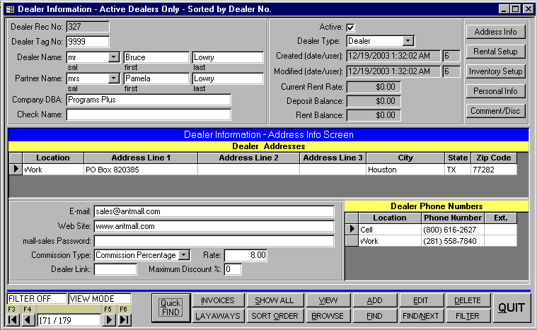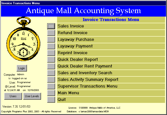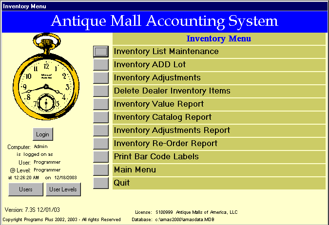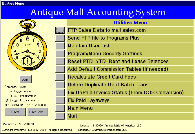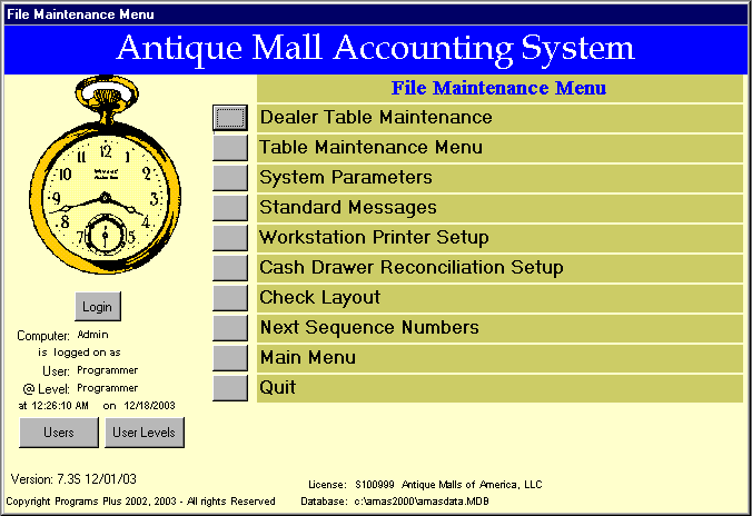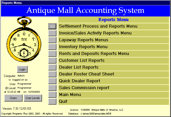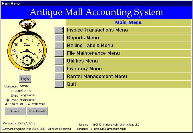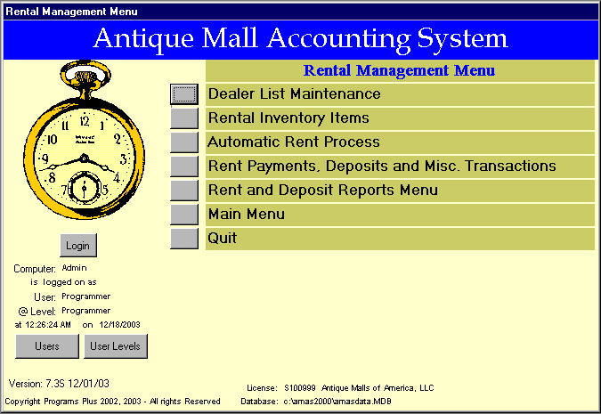 The Antique Mall Accounting System - by Programs Plus - Sample Screens